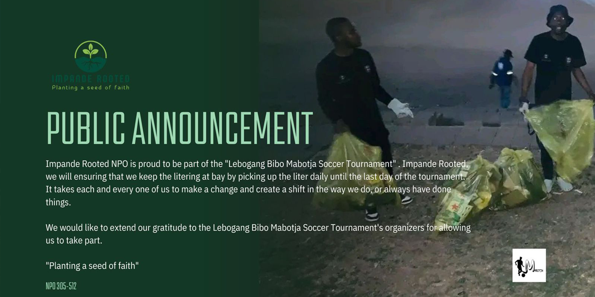 As it is known we live in over-populated communities where hygiene lacks a great deal which results in us as human settling in spaces which are polluted. This alone compromises a human's health and well being. As Impande Rooted we have created this initiative to contribute in creating cleaner living conditions for our people.